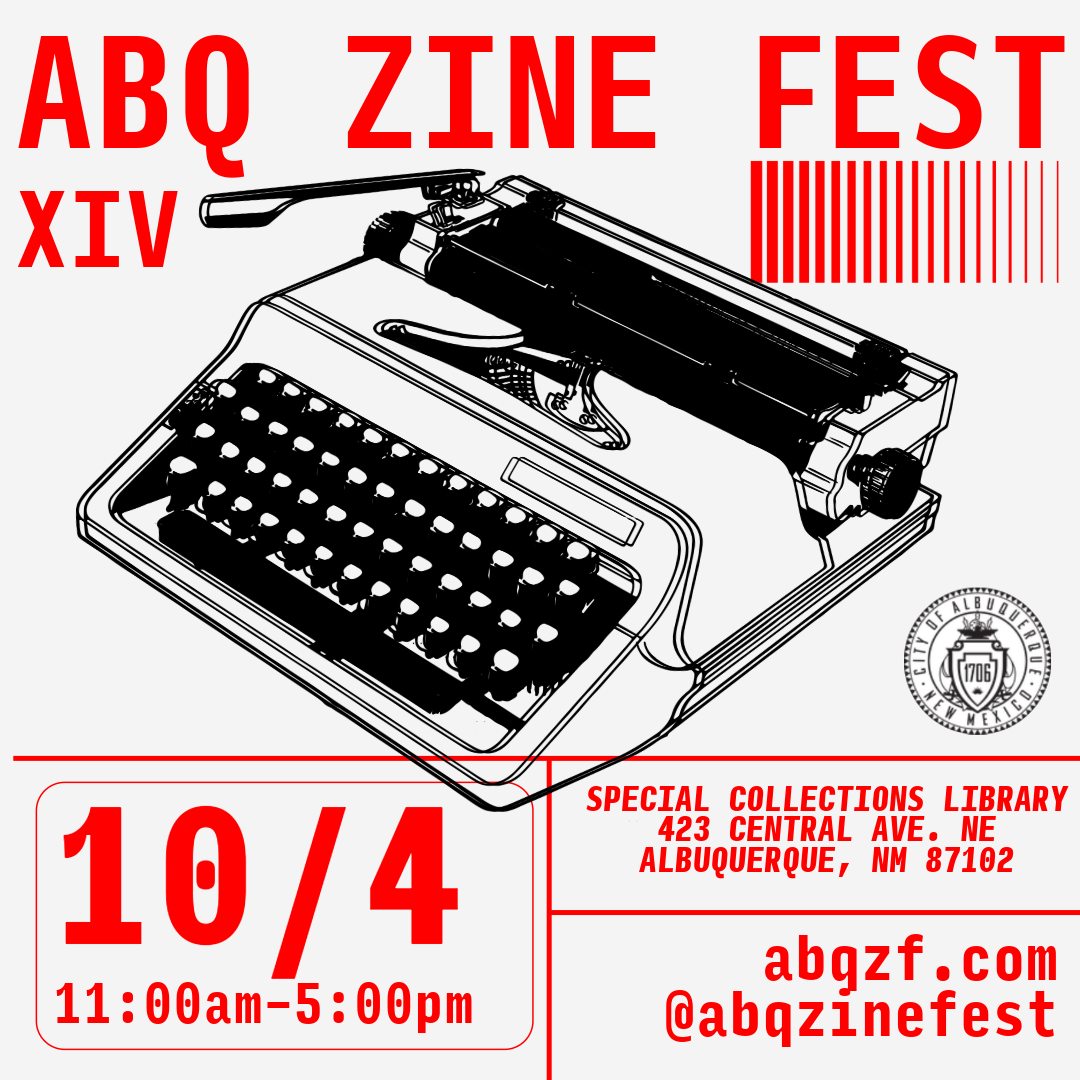 + When is ABQ Zine Fest?ABQ Zine Fest XIV is on Saturday, October 4 from 11am to 5pm.